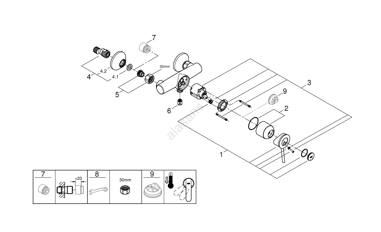 • Includes GROHE QuickSpanner for fast, simple installation without additional tools.