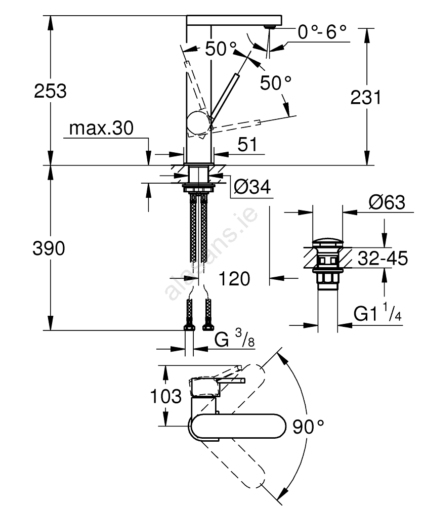 • Adjustable GROHE AquaGuide aerator for precise alignment of the water jet.