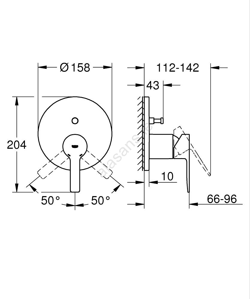 • Escutcheon with GROHE FastFixation technology allows quick installation with concealed sealing and fastening.
