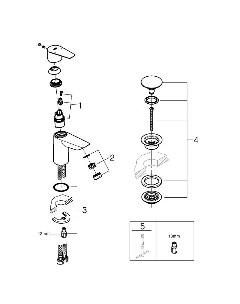 • GROHE Water Saving aerator with a flow of 5.7 l/min for water savings.