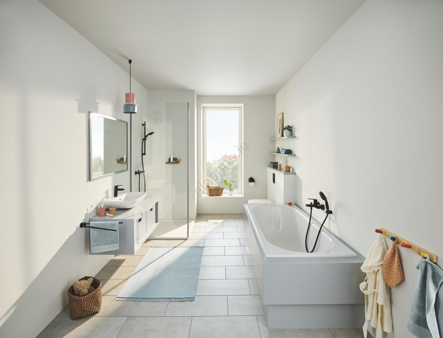 • Single-lever bath mixer for effortless control of water flow and temperature.
