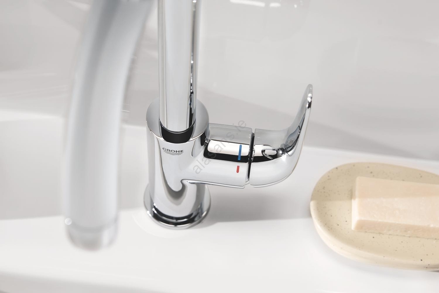 • The GROHE Long-Life ES ceramic cartridge with cold start function saves energy by allowing only cold water to flow when the lever is in the mid position.