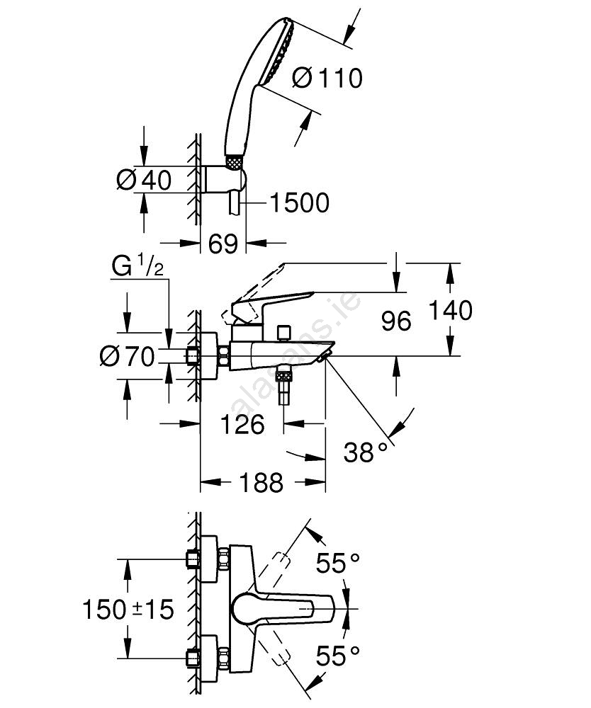 • Suitable for wall mounting with 150 mm center-to-center spacing, ideal for bathroom upgrades.