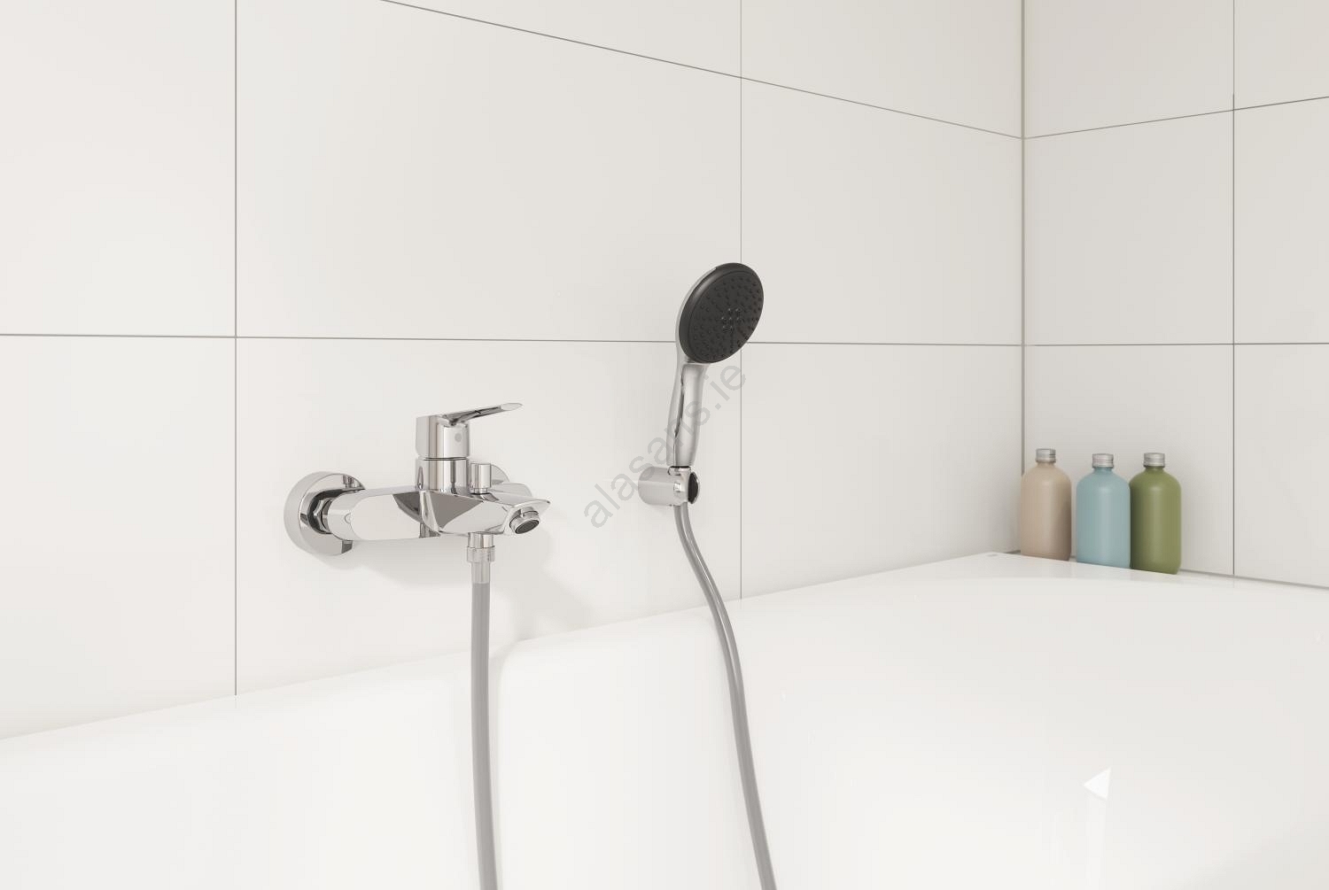 • Wall-mounted single-lever bath mixer with elegant GROHE Long-Life chrome finish for long-lasting shine.