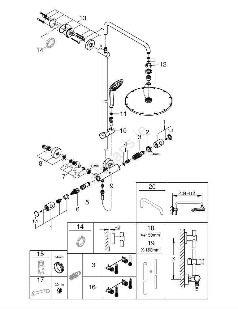 • Optional GROHE EasyReach shelf (26 362), sold separately.