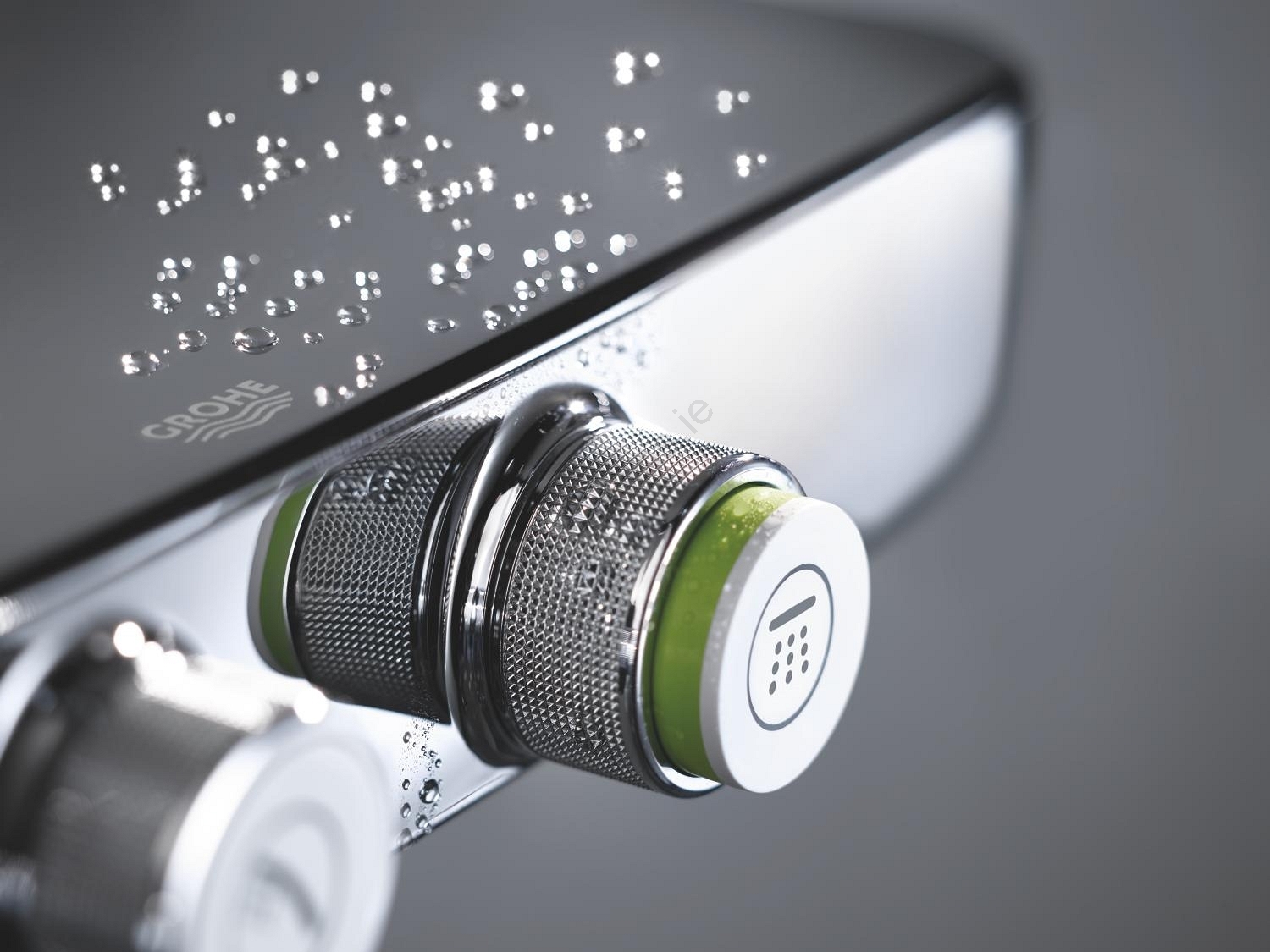 • Innovative GROHE SmartControl technology enables easy switching between the overhead and hand shower and precise flow control.