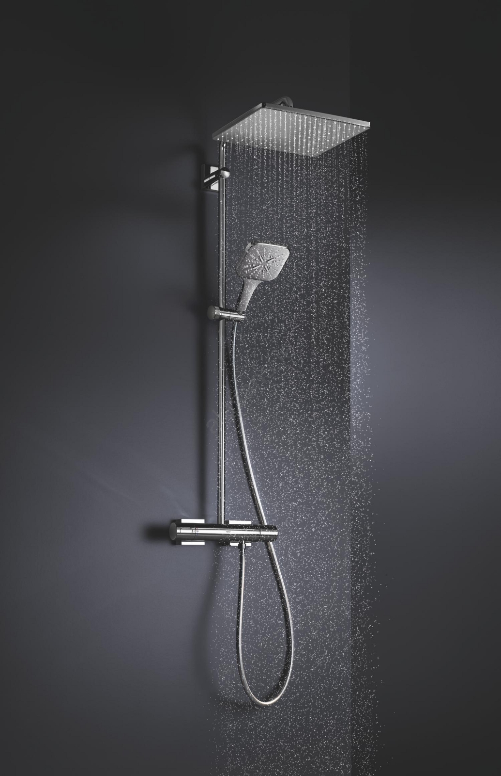 • Designer shower system GROHE Rainshower 310 SmartActive Cube for ultimate comfort.