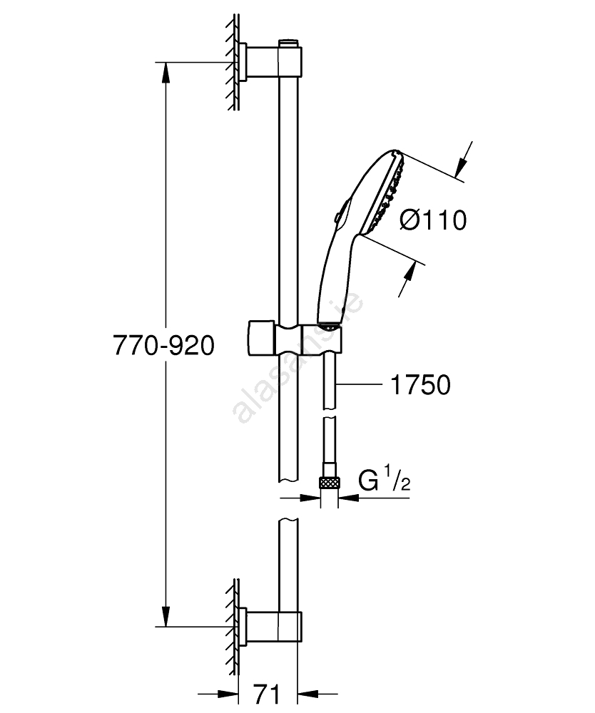 • Adjustable sliding holder allows convenient height and angle adjustment of the hand shower.