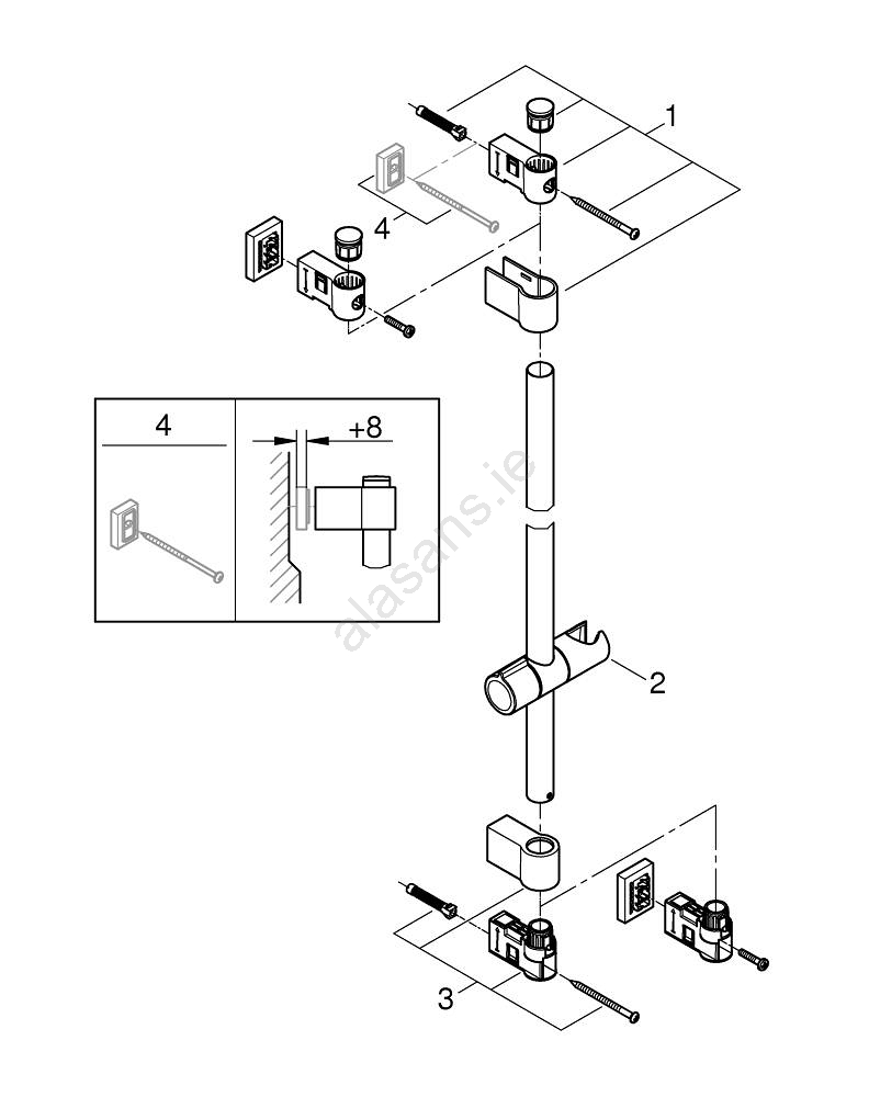 • GROHE FastFixation technology with adjustable upper bracket for mounting into existing holes.