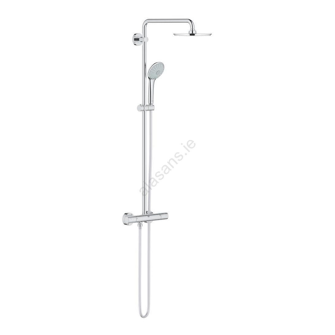 • GROHE Euphoria 210 shower system with thermostat for wall-mounted installation.