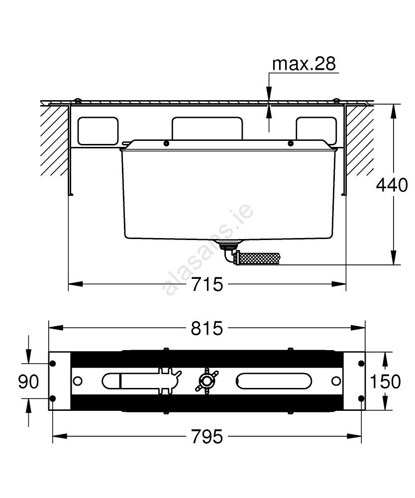 • Cover caps to conceal screw fixings are supplied in a chrome finish.