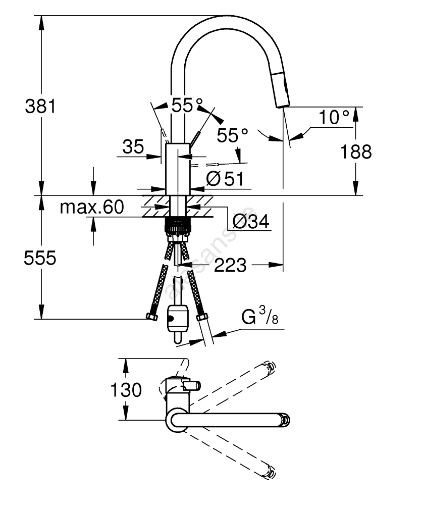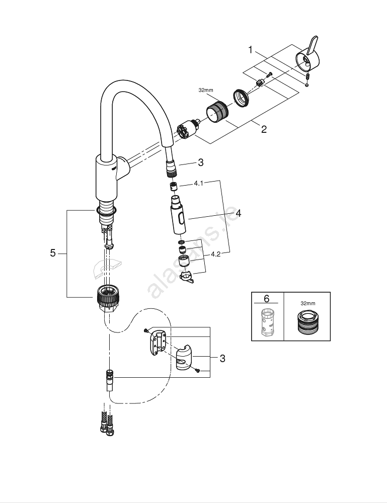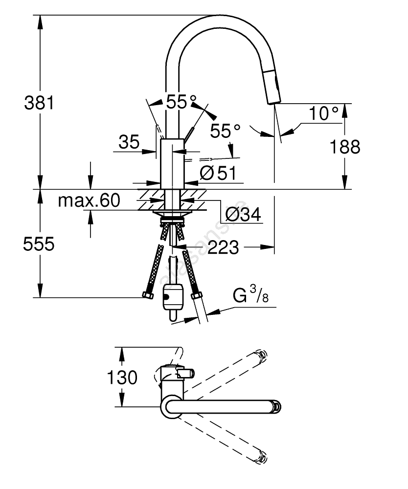• Aerator with GROHE WaterSaving technology, flow rate below 9 l/min.