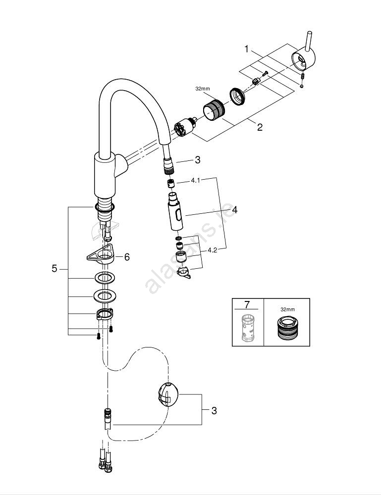 • GROHE EasyDock technology enables easy retraction and smooth docking of the spray head back into place.