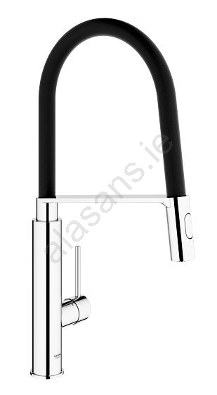 • Professional spray head with flexible, hygienic GROHFlexx santoprene kitchen hose for easy cleaning.