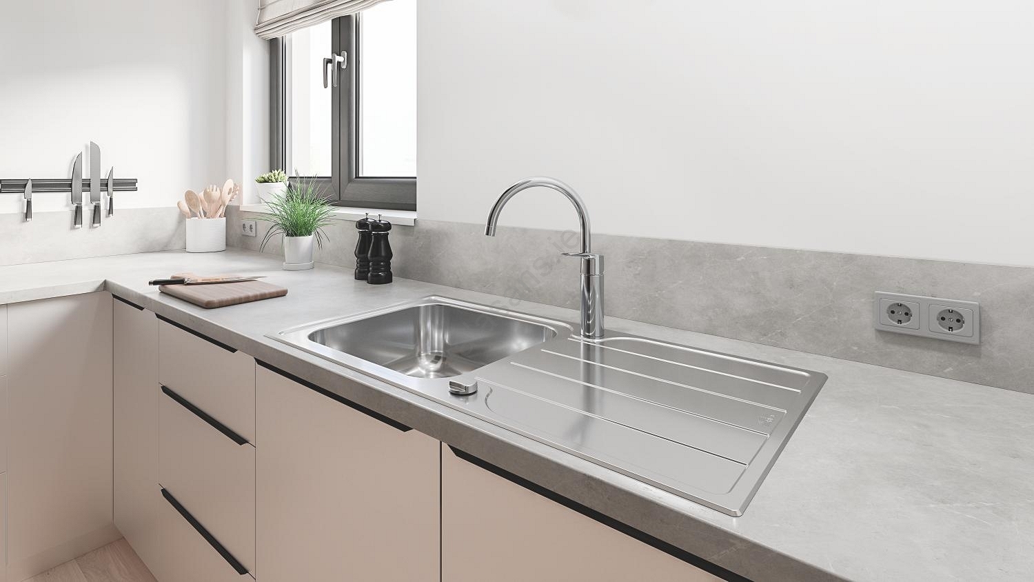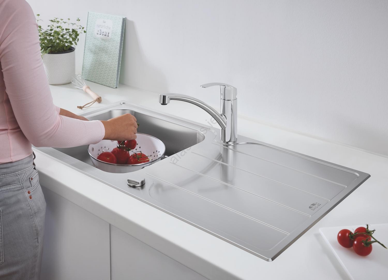 • GROHE K500 60-S 100/50 1.0 kitchen sink with draining board for maximum functionality.