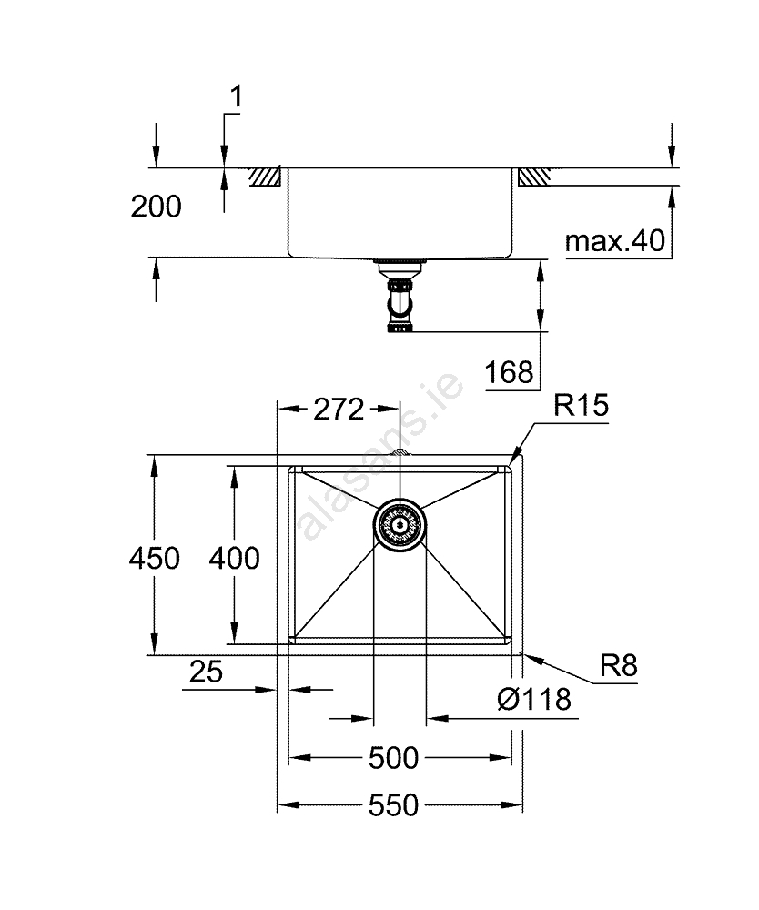 GROHE 31574SD1 - K700U Kitchen Sink 550 x 450 mm Stainless Steel