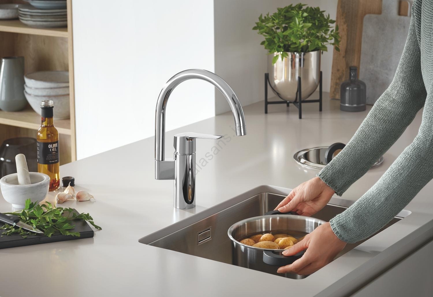 • Stainless steel kitchen sink GROHE K700U combines modern design with long-lasting durability.