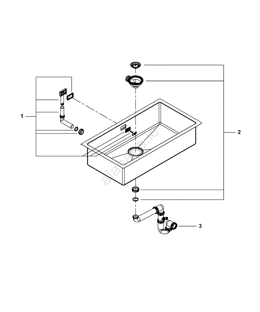 • Drain opening Ø 3,5" (90 mm) with debris strainer.
