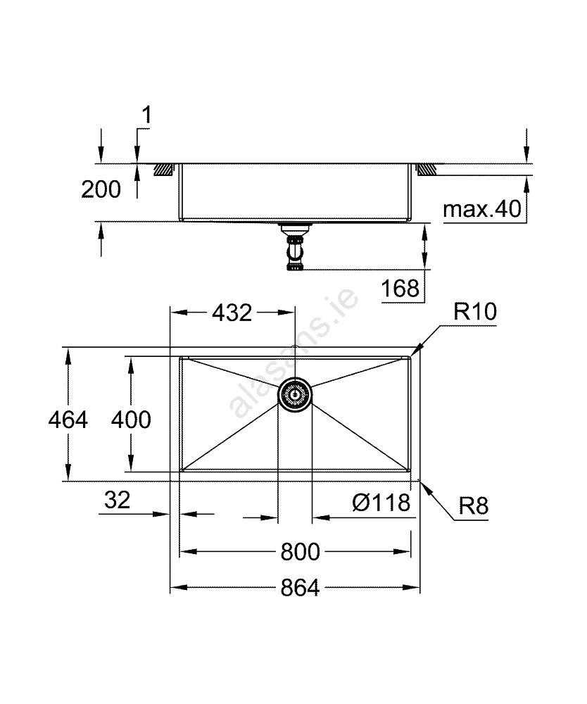 • Dimensions 864 x 464 mm with a deep bowl 800 x 400 x 200 mm for comfortable washing of large pots and pans.