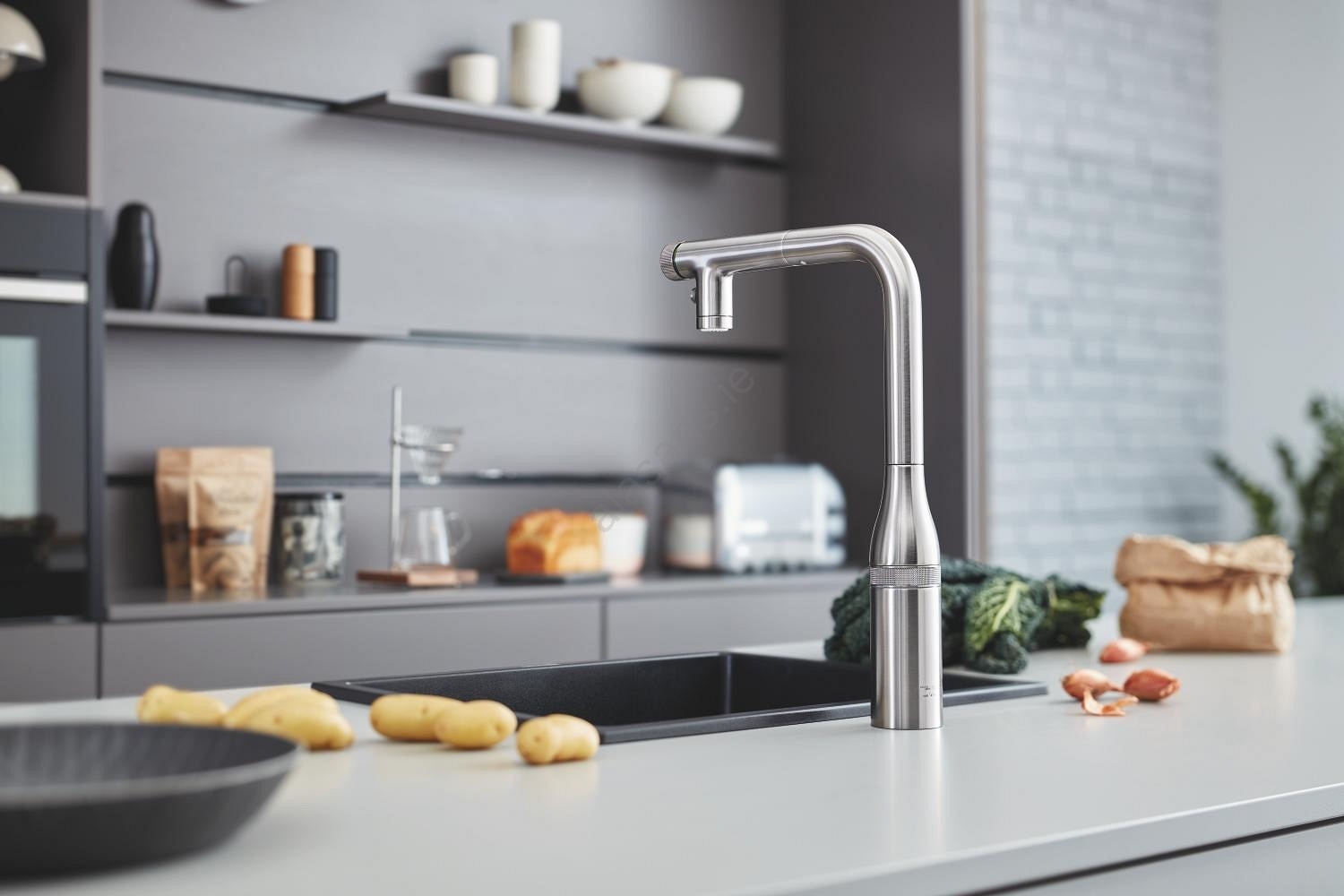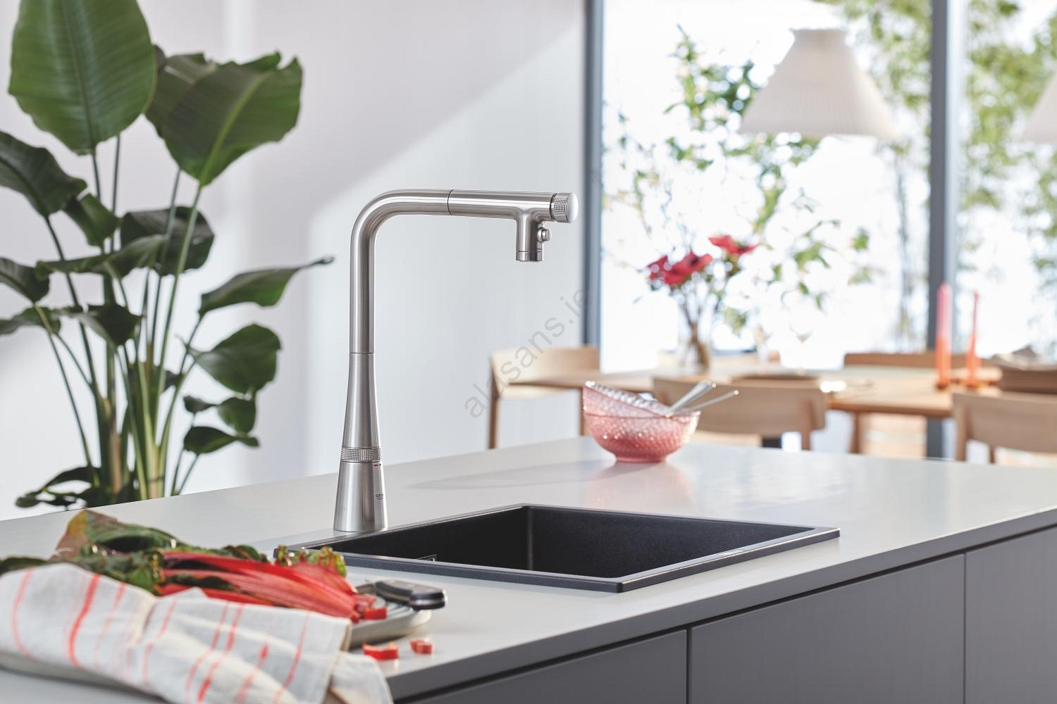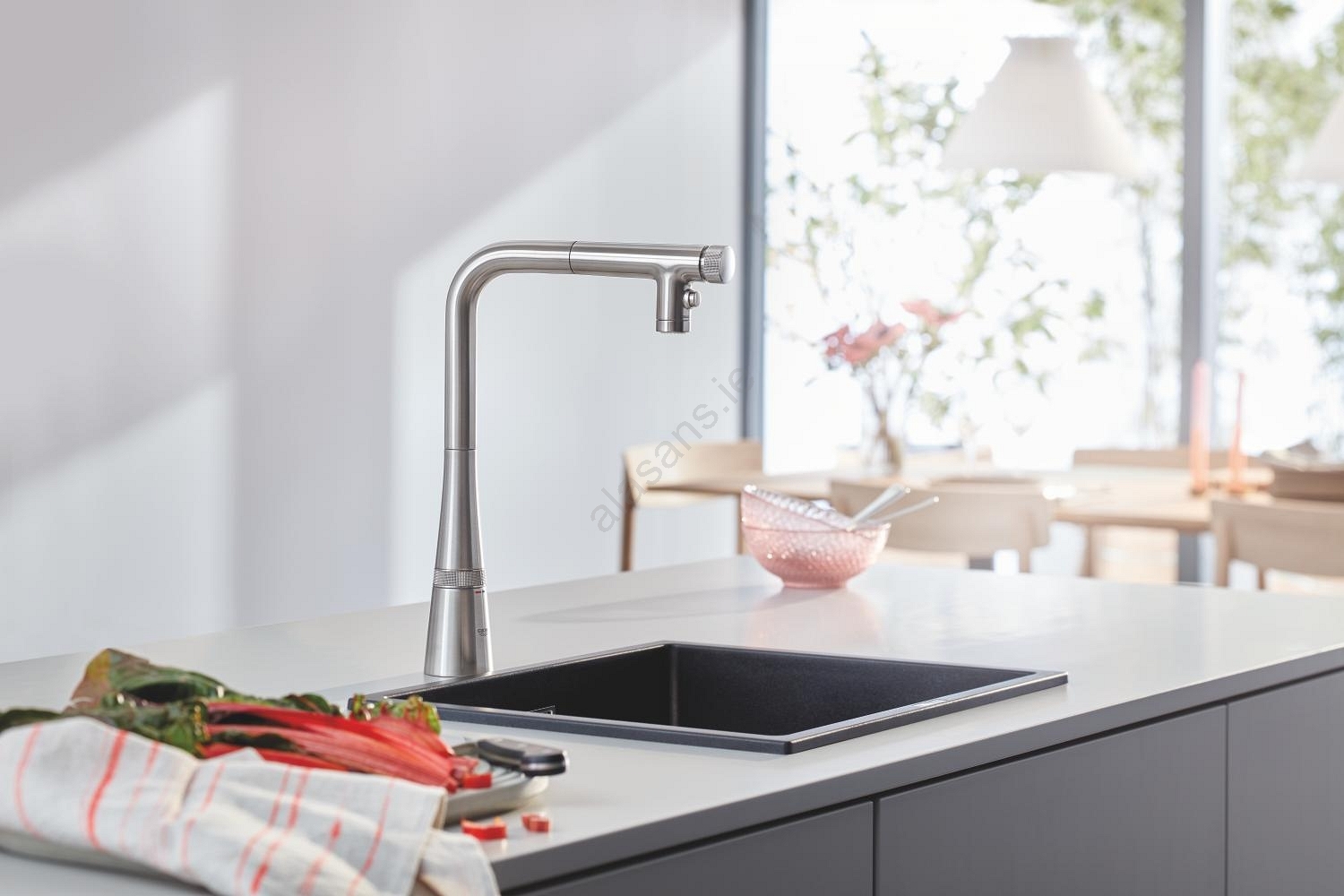 • Modern GROHE K700U quartz composite sink for an elegant kitchen look.