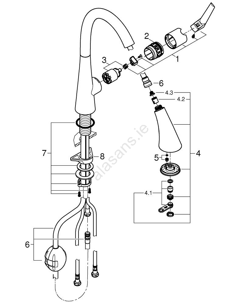 • GROHE Magnetic Docking for easy insertion and smooth docking of the spray head back into its starting position.