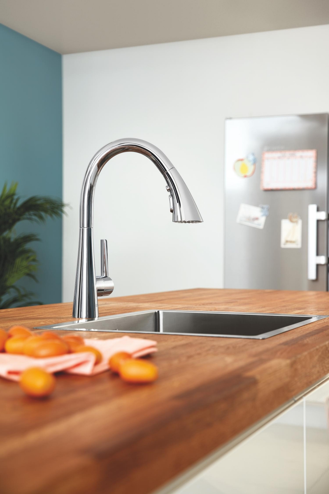 • Pull-out spray head with three flow modes: laminar, spray and water-saving GROHE Blade Spray.