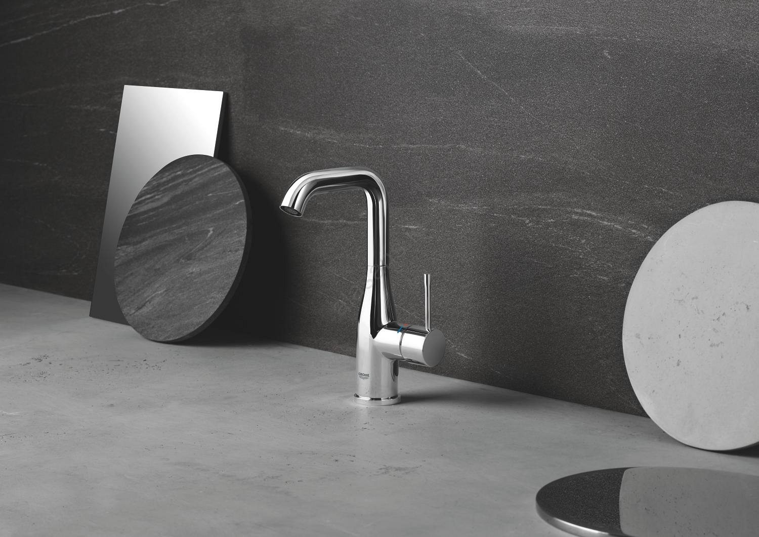 • Elegant single-lever GROHE Essence basin mixer with a high swivel spout for maximum flexibility.