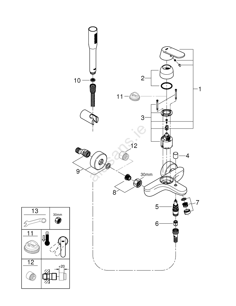 • 46mm GROHE SilkMove ceramic cartridge for smooth and precise control of water temperature and flow.