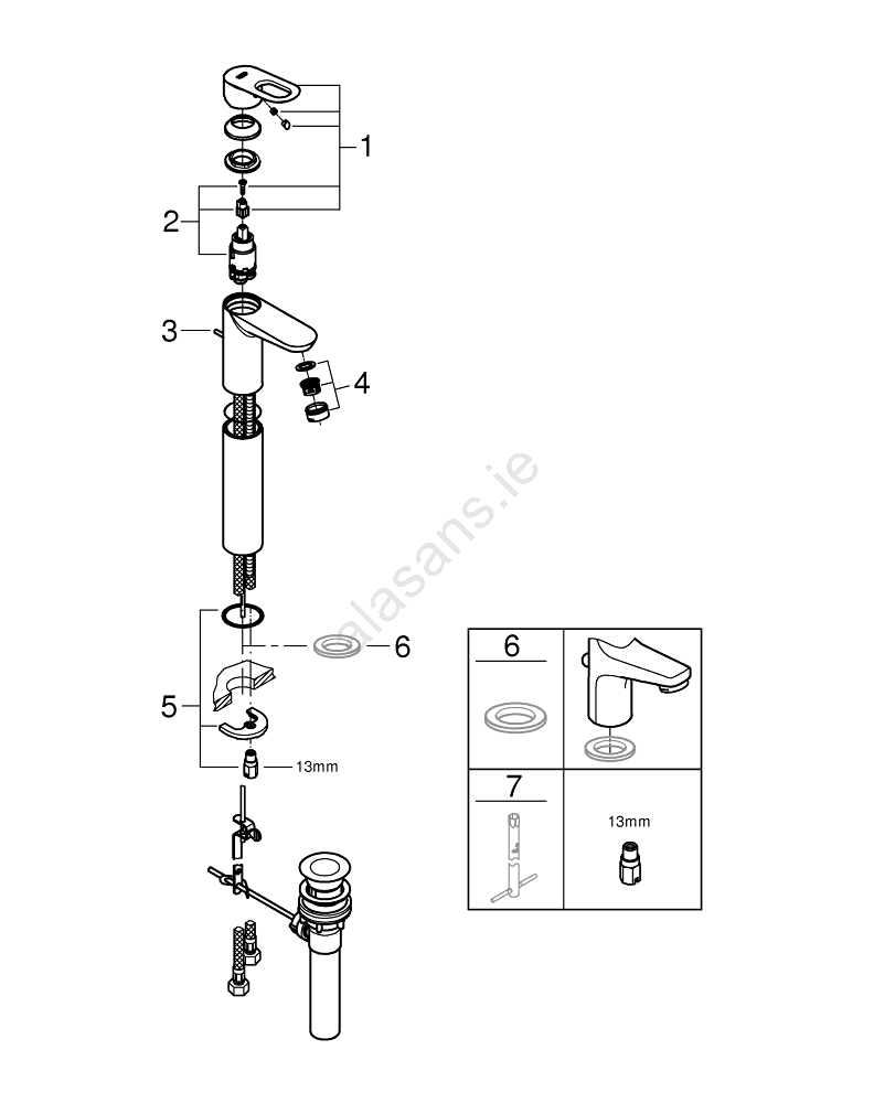 • GROHE Long-Life 28 mm ceramic cartridge ensures reliable flow control and long service life.