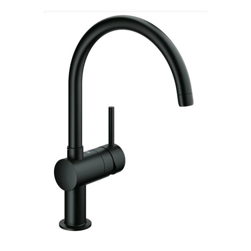 • Elegant GROHE Minta kitchen faucet with a high C-shaped spout for easy filling of large pots and containers.