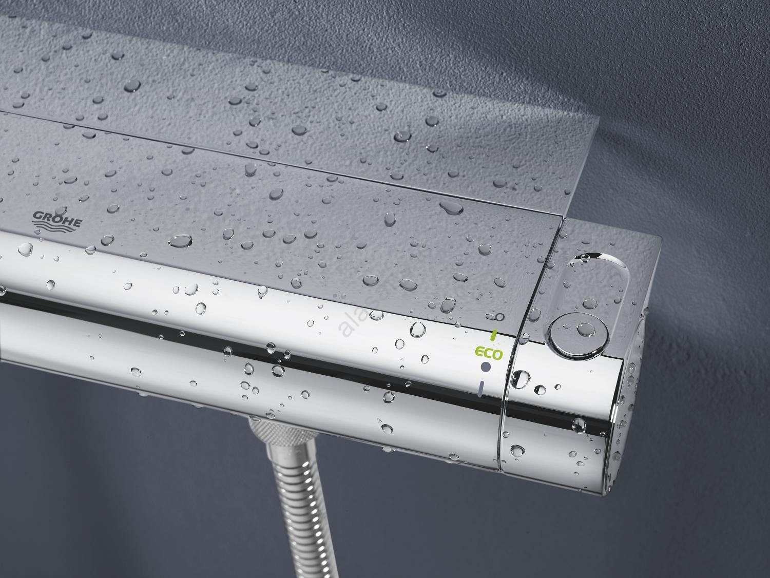 • Volume control handle with a water-saving GROHE EcoButton to reduce water consumption.