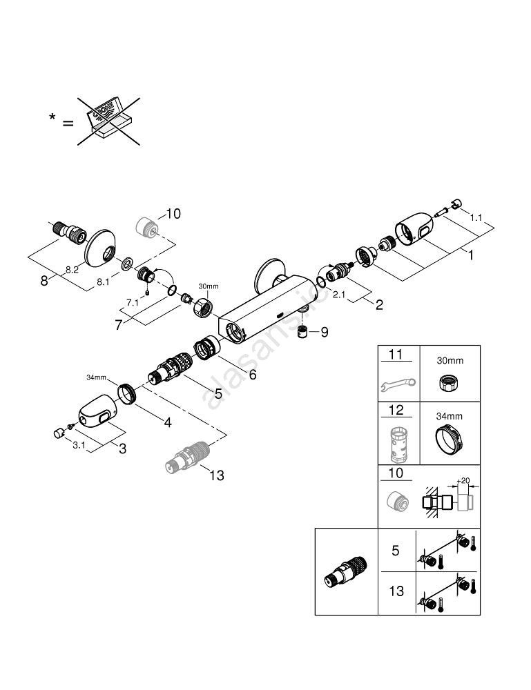 • Optional GROHE SafeStop Plus temperature limiter at 43 °C for enhanced safety.