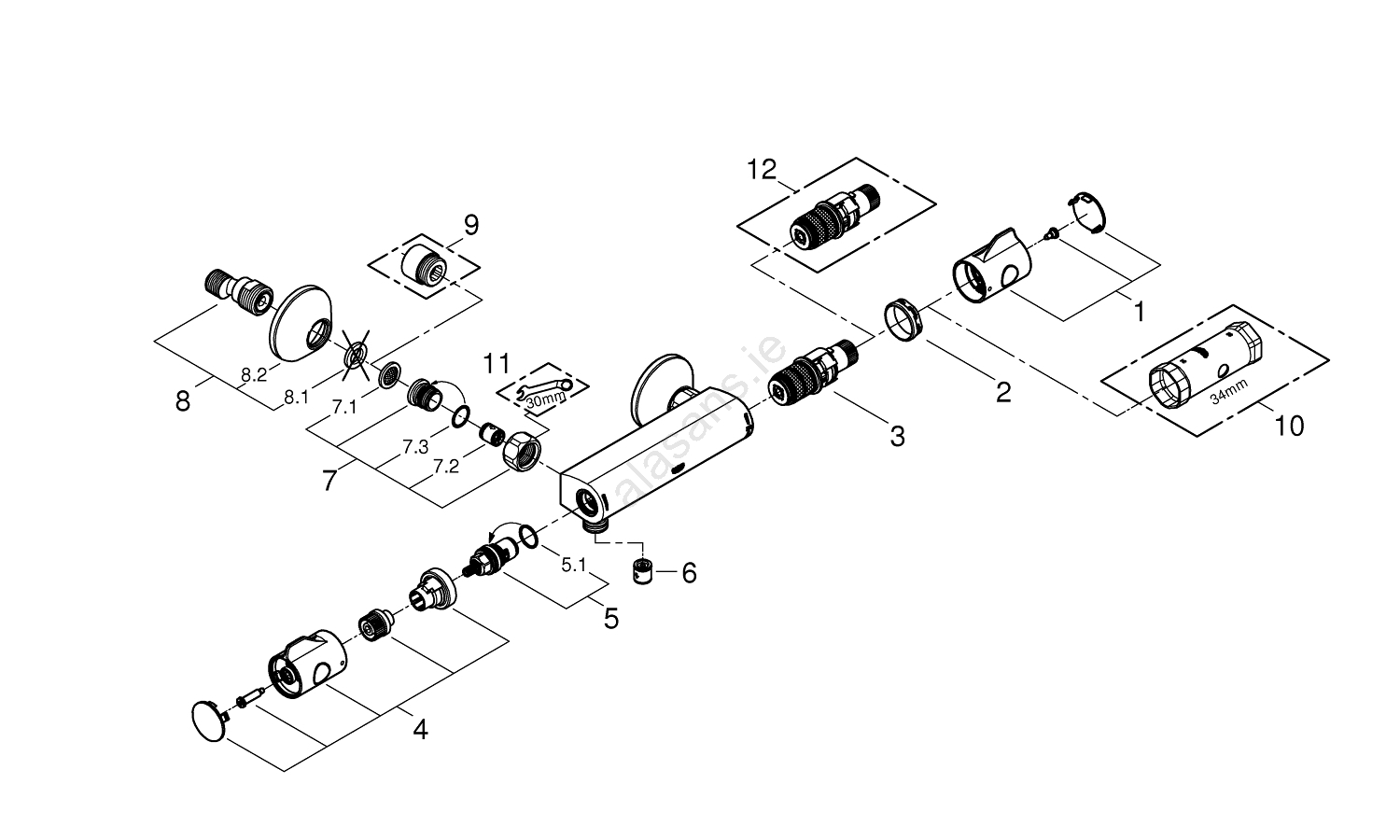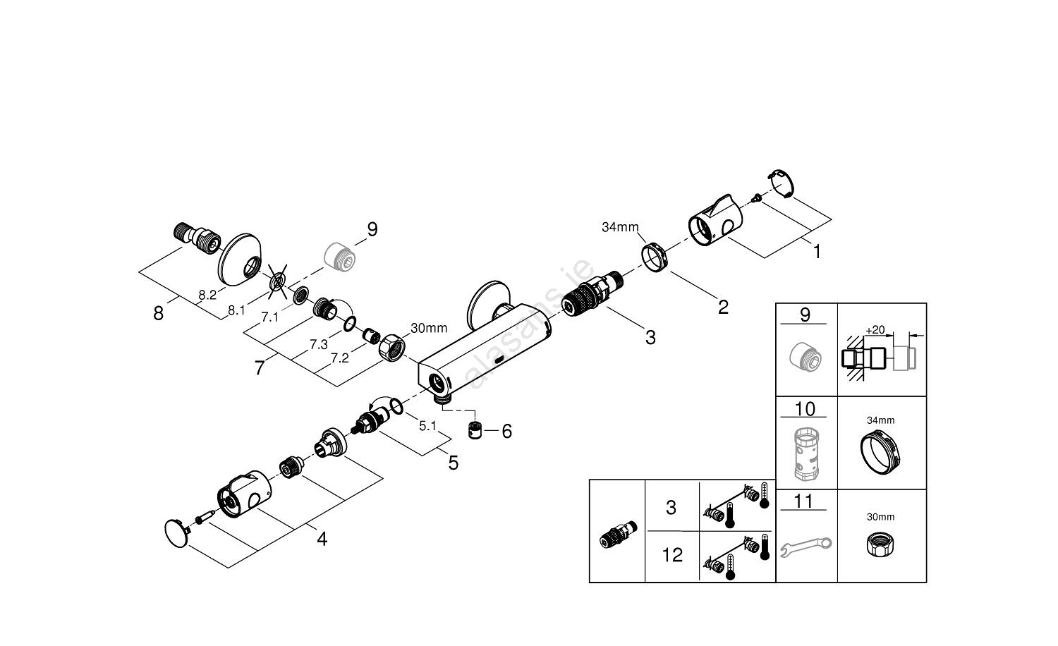 • Compact GROHE TurboStat cartridge with wax thermal element for instantaneous response to temperature changes.