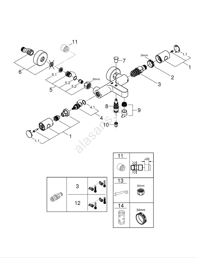 • Optional GROHE SafeStop Plus temperature limiter set at 43 °C for enhanced protection.
