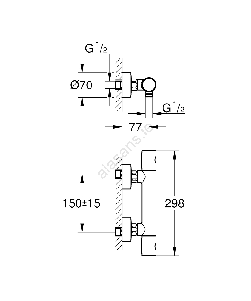 • Integrated mixed-water shut-off valve for easy maintenance.