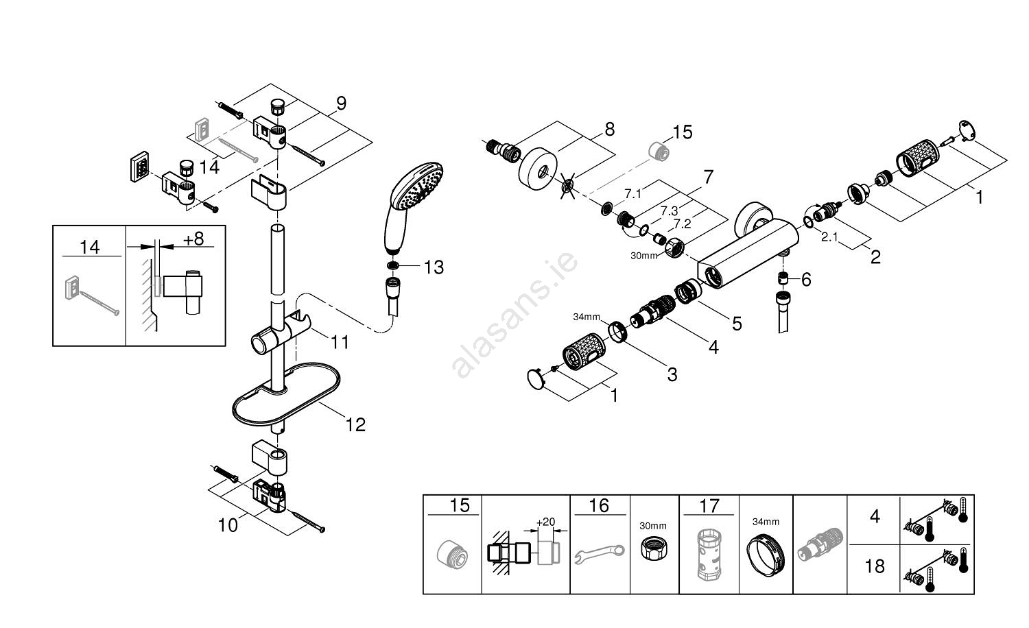 • GROHE QuickFix system enables quick and easy installation without special tools.