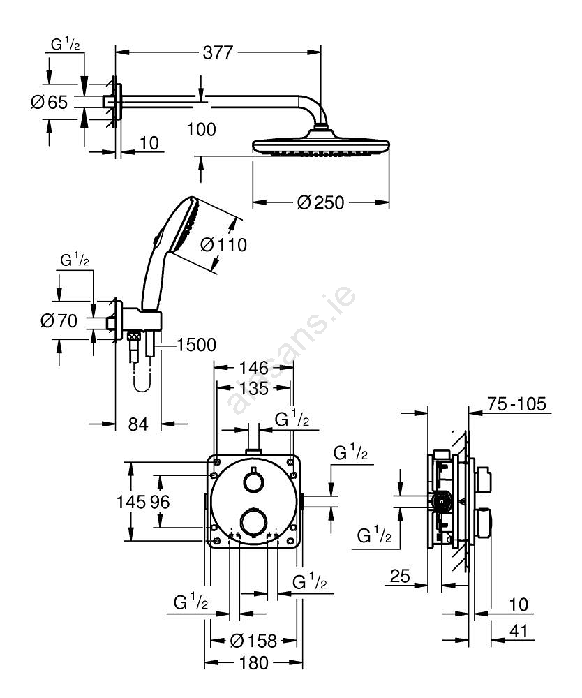 Bathroom, Brands, Concealed taps, Grohe, Shower heads, Shower sets, Shower taps, Showers, Taps, Thermostatic taps