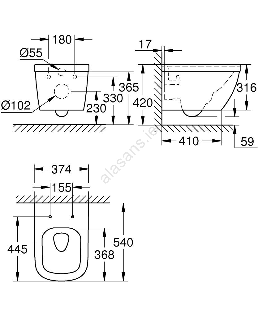 GROHE 39328000 - EURO CERAMIC Wall-Hung Toilet 540 × 374 mm ceramic/white