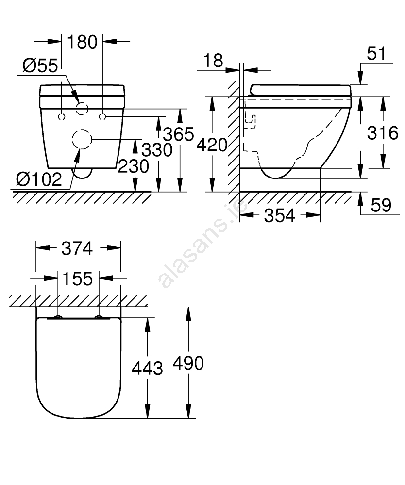 • Sanitary ceramic with a smooth, dirt-resistant surface.