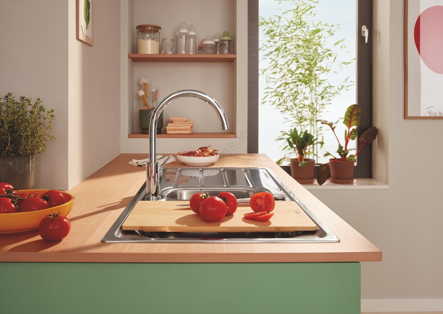 • Elegant design complements your kitchen and pairs perfectly with GROHE sinks.