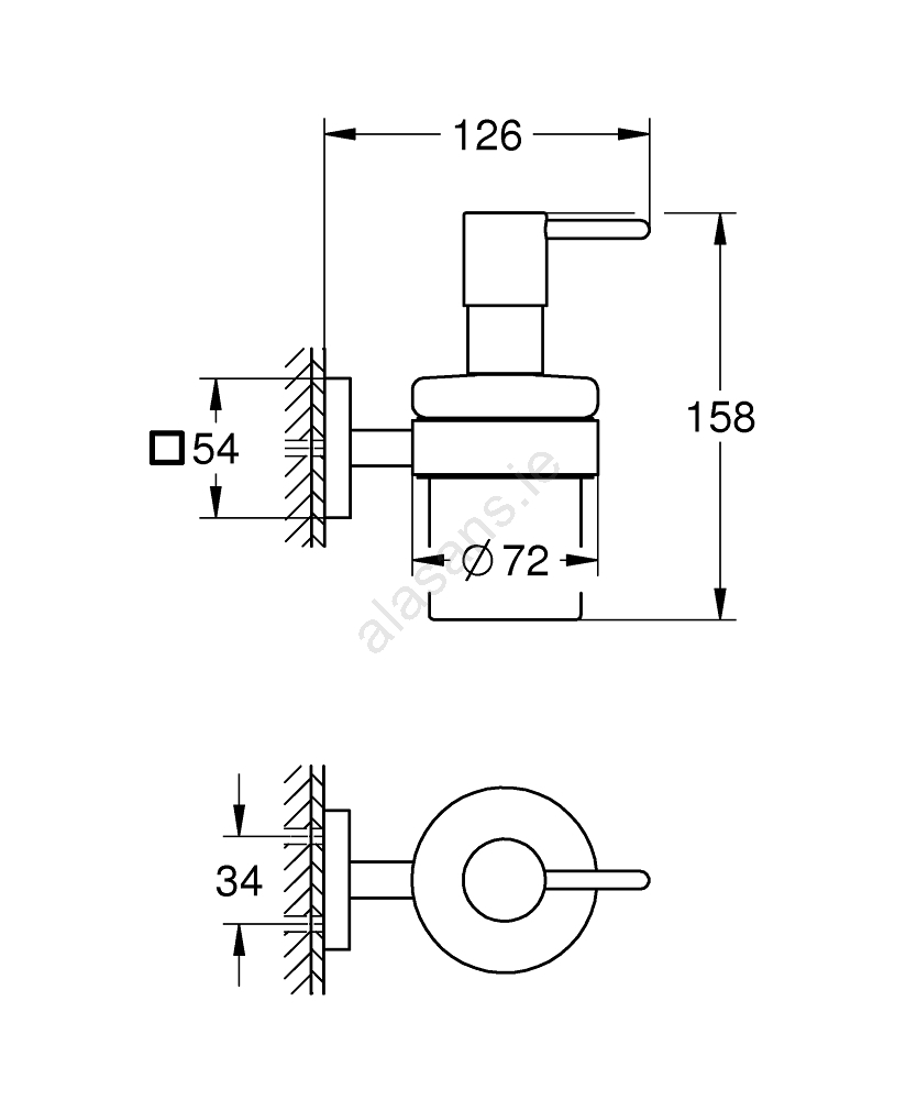 • Replacement soap dispenser (41 188) and replacement mounting plate (40 917 000) available separately.