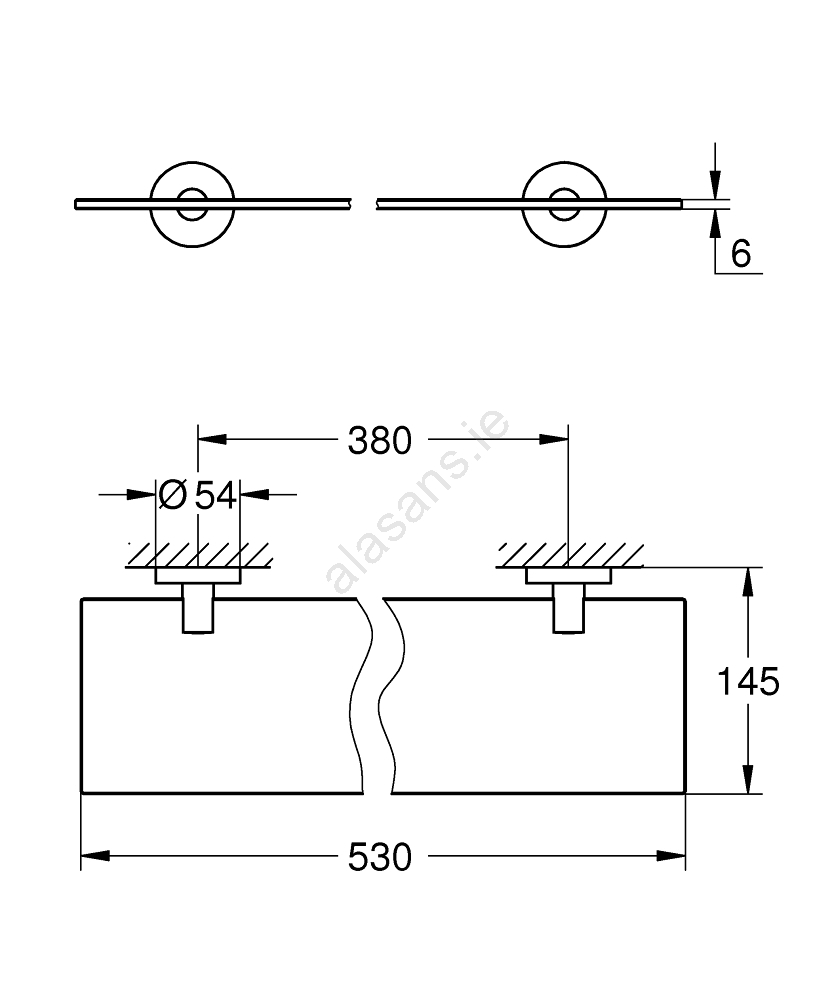 • Can be installed by drilling (screws and wall plugs included) or bonded using GROHE QuickGlue A2 adhesive (sold separately).