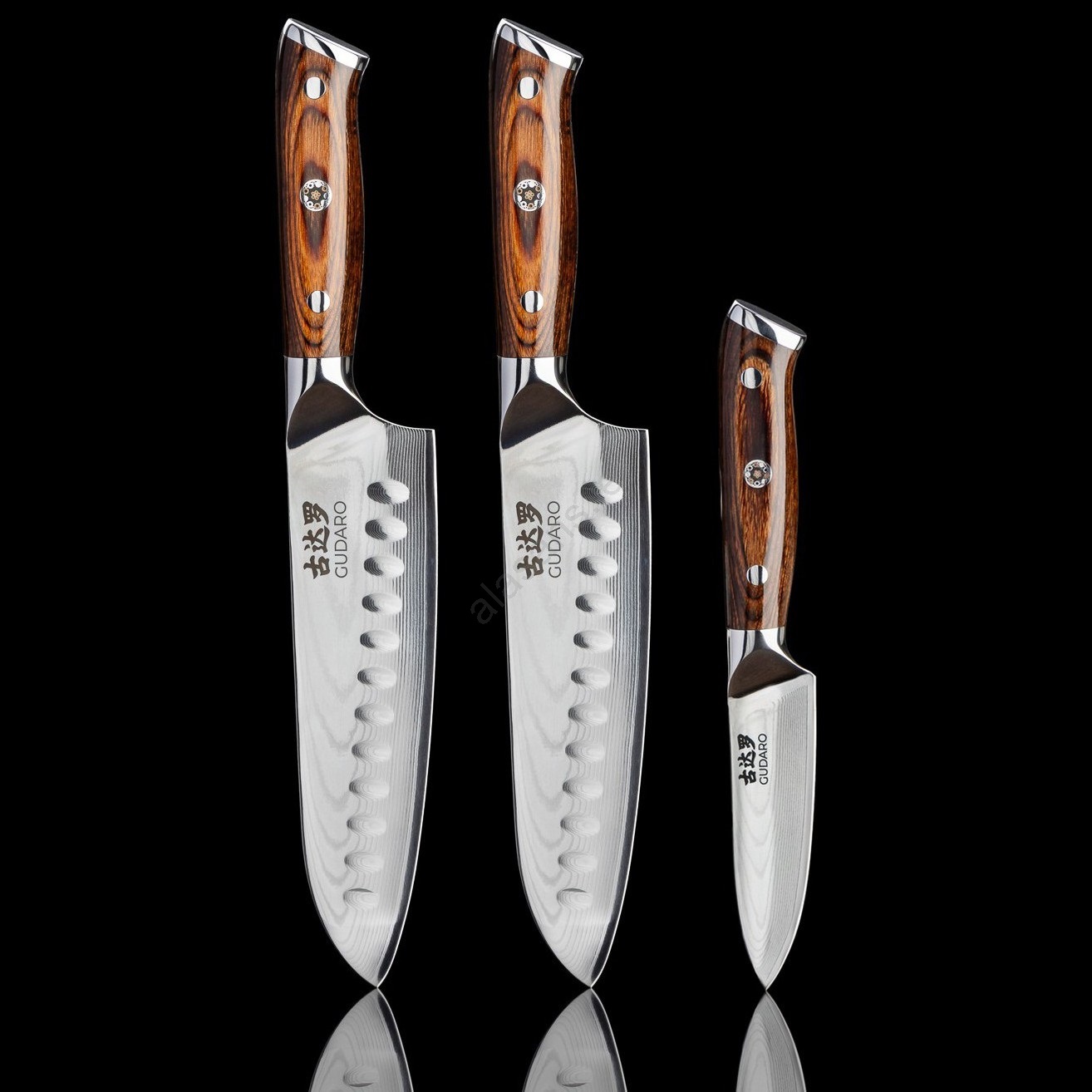 Gudaro - SET 2x Damascus Santoku kitchen knife FENG 7.5", 67-layer steel, length 18 cm + 1x FREE Damascus kitchen knife FENG 3.5", 67-layer steel, length 9.5 cm