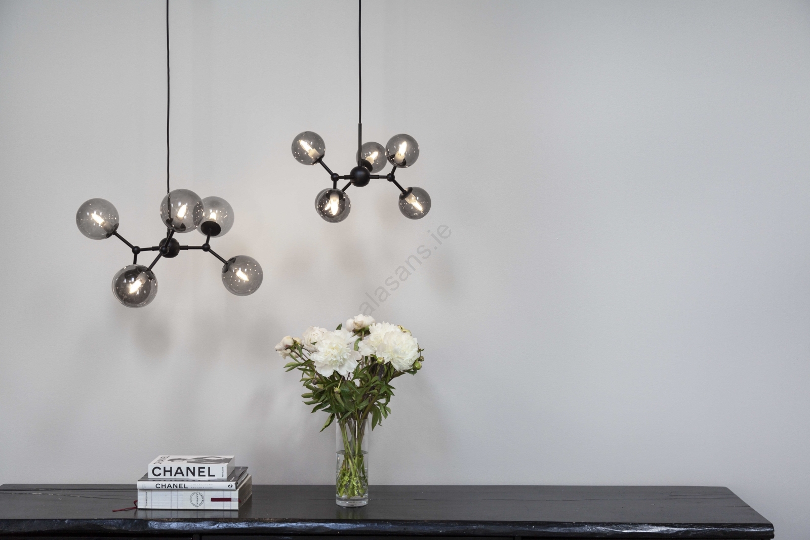 Halo Design 736553 - ATOM cable-suspended chandelier 6xG9/28W/230V Ø 45 cm black/smoky black characterizes nice and functional design.  A bulb with G9 cap is suitable for the light. Here, you can buy other bulbs at advantageous prices. You will have an interesting addtiion to your home.