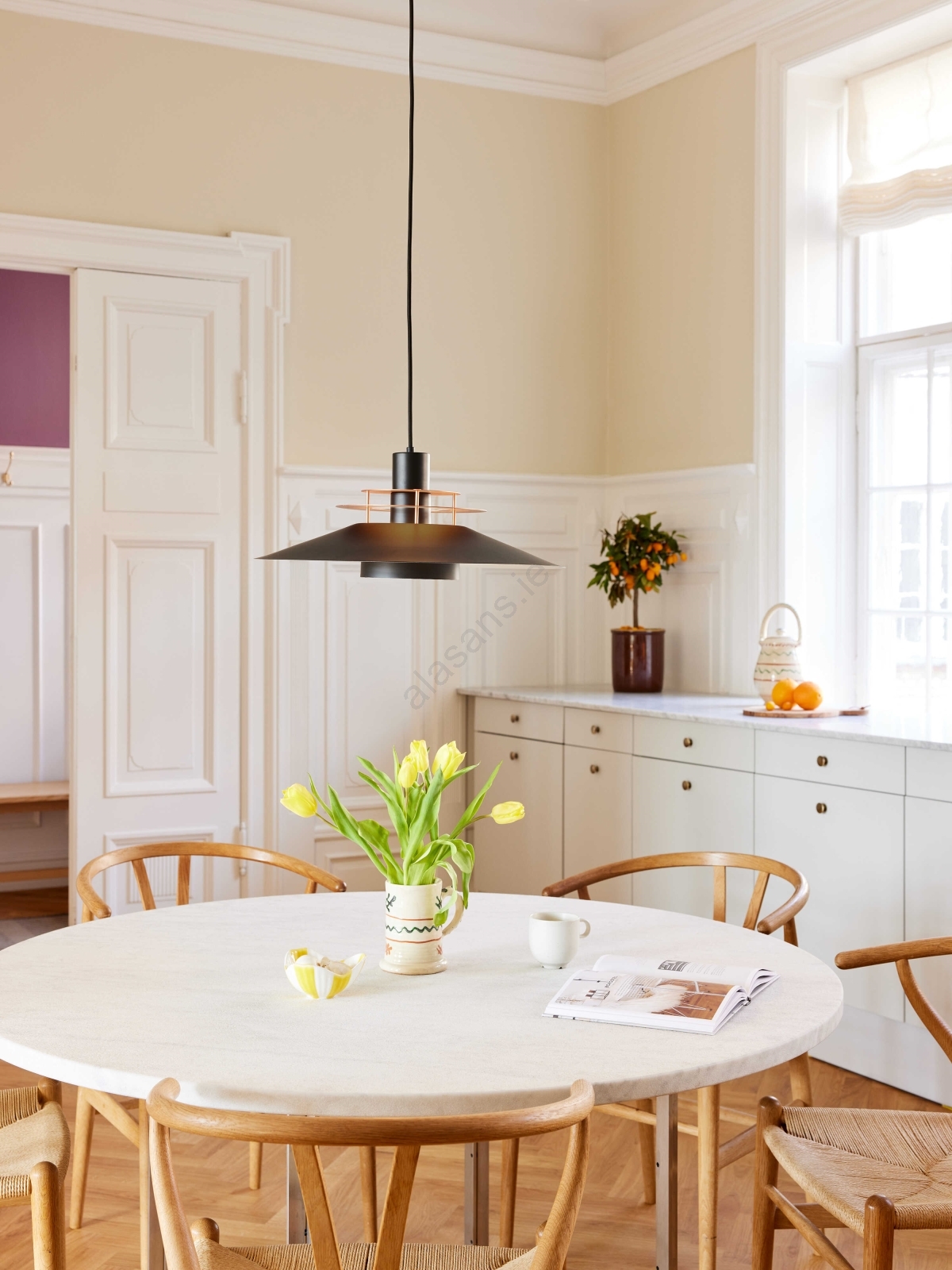 Halo Design 744503 - RIVOLI cable-hung pendant light 1xE27/40W/230V Ø 50 cm black/copper characterizes nice and functional design.  A bulb with E27 cap is suitable for the light. Here, you can buy other bulbs at advantageous prices. You will have an interesting addtiion to your home.