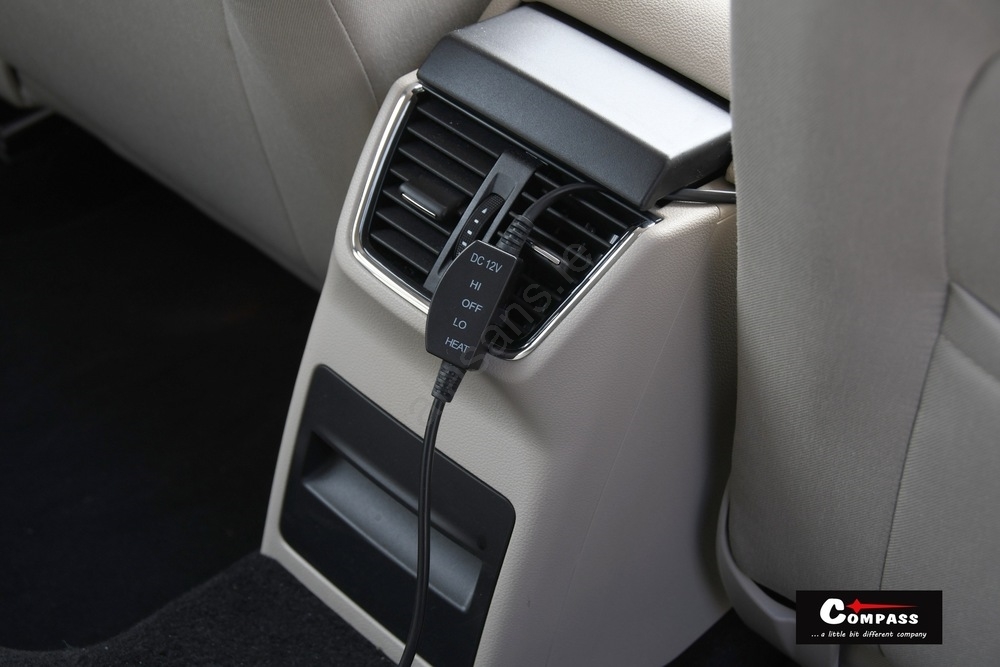 • Connects to a standard car cigarette lighter socket with a 12V connector.