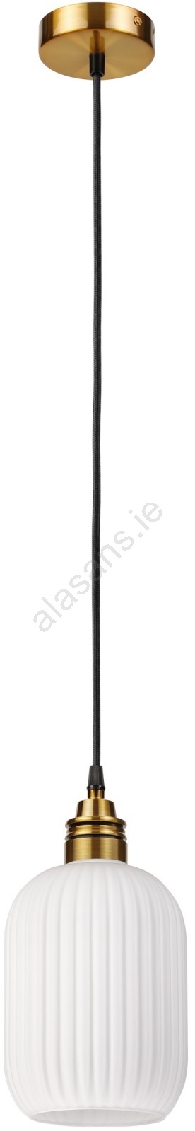 HECTOR cable pendant lamp 1xE27/15W/230V white/brass Ø 14 cm characterizes nice and functional design.  A bulb with E27 cap is suitable for the light. Here, you can buy other bulbs at advantageous prices. You will have an interesting addtiion to your home.