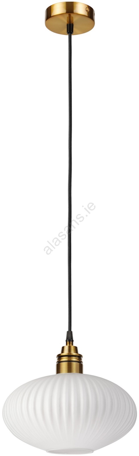 HECTOR cable-hung pendant light, 1x E27/15W/230V, white/brass, Ø 25 cm