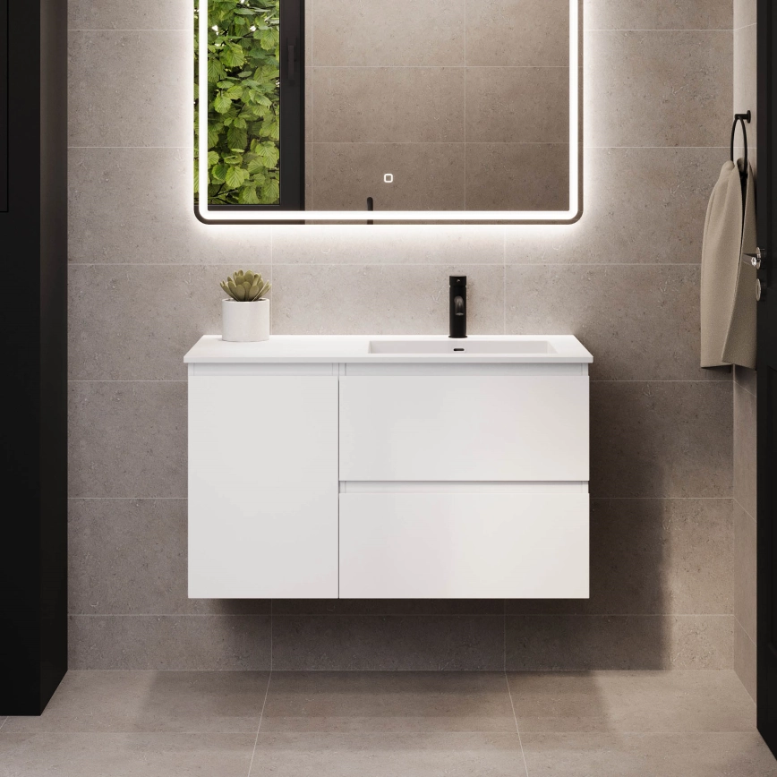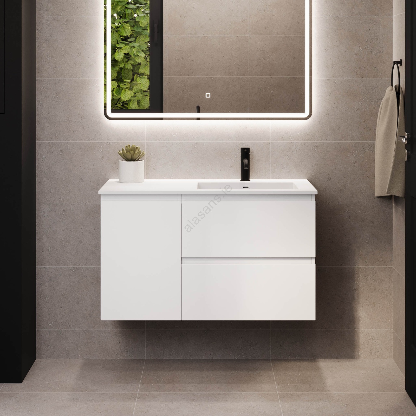• HELSINKI 95 cm Left‑Hand Bathroom Vanity with Basin / White