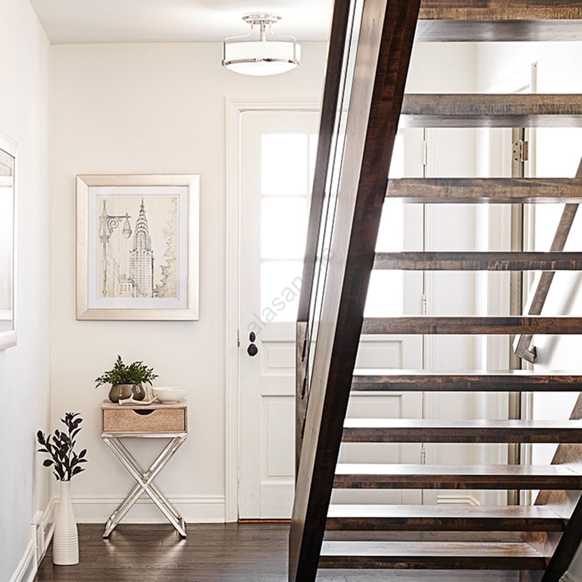 Hinkley - Flush-mount chandelier HARPER 3xE27/60W/230V Ø 45.6 cm polished chrome characterizes nice and functional design.  A bulb with E27 cap is suitable for the light. Here, you can buy other bulbs at advantageous prices. You will have an interesting addtiion to your home.